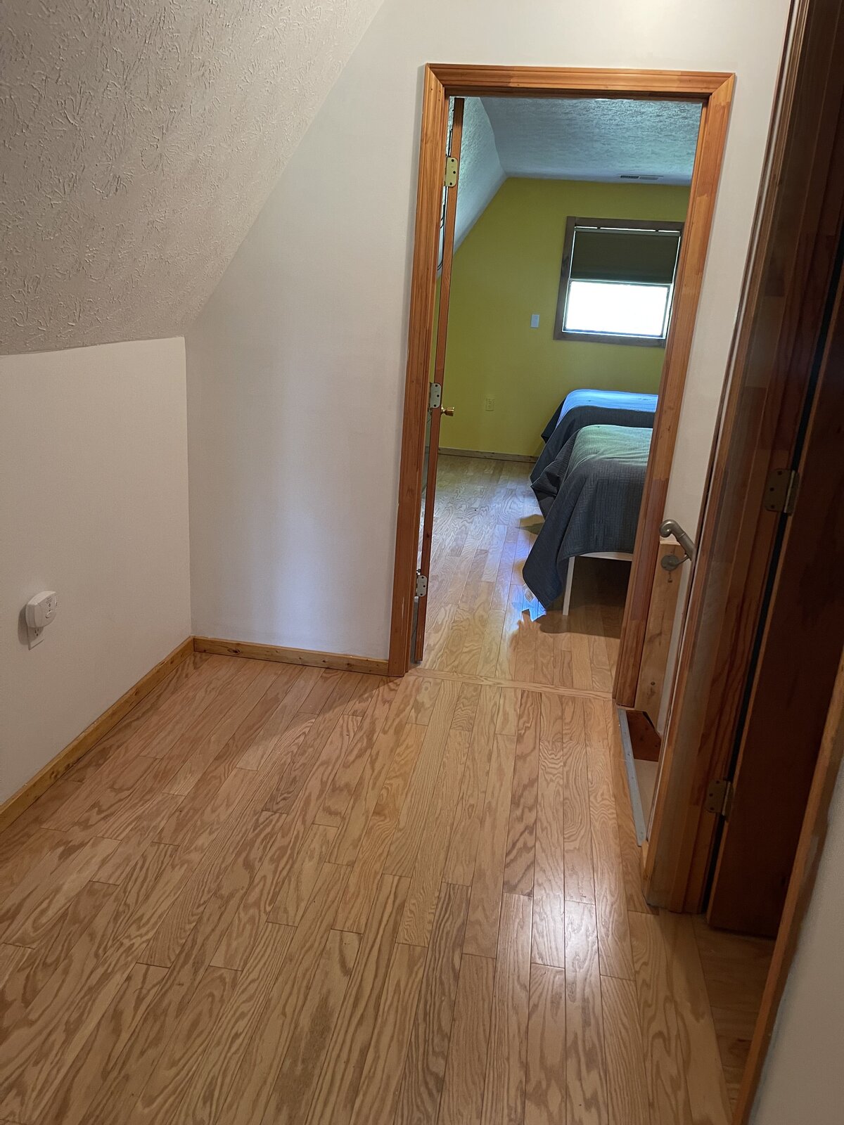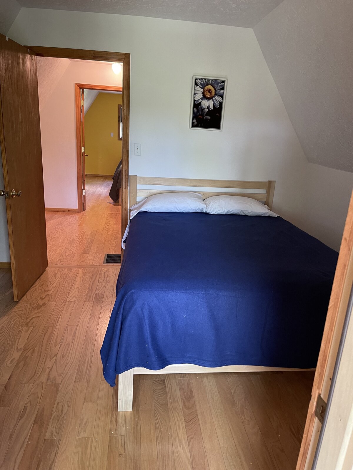The second floor has 1 queen bedroom, 2 queen bedrooms and 1 half bathroom.